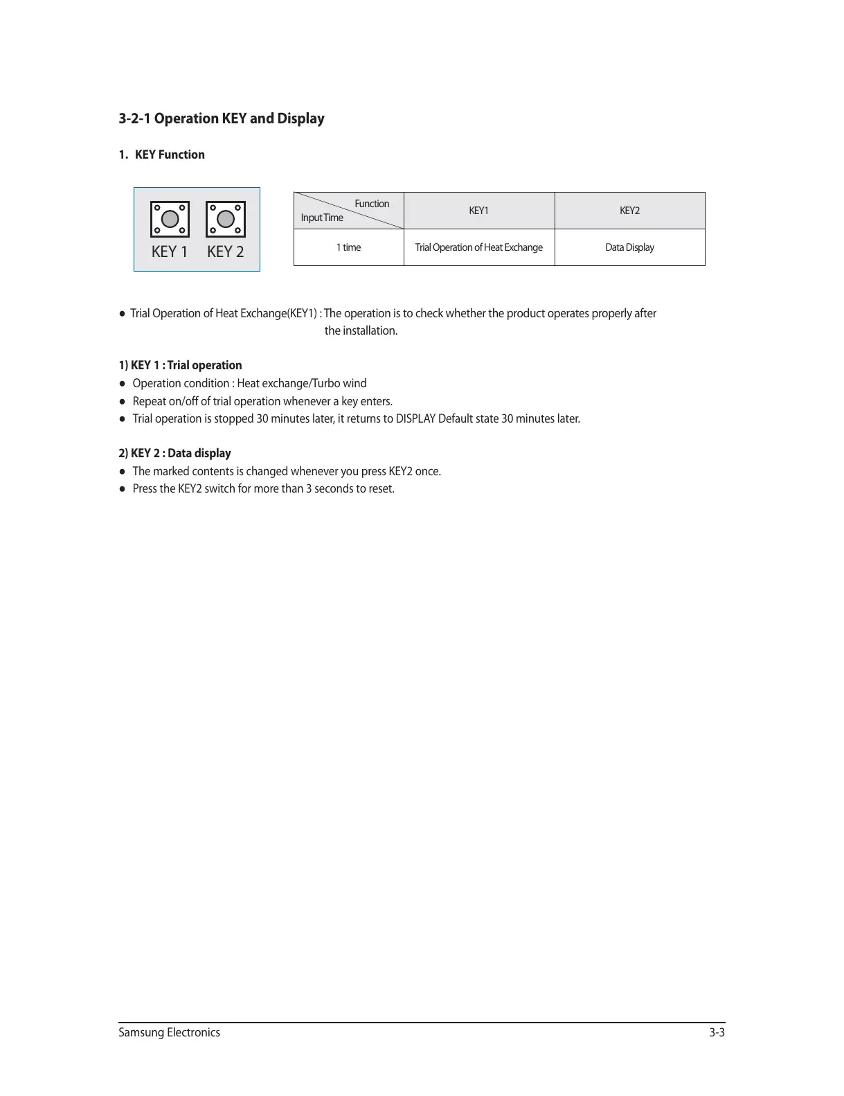 Trial Operation of Heat Exchange(KEY1) : The operation is to check whether the product operates properly after