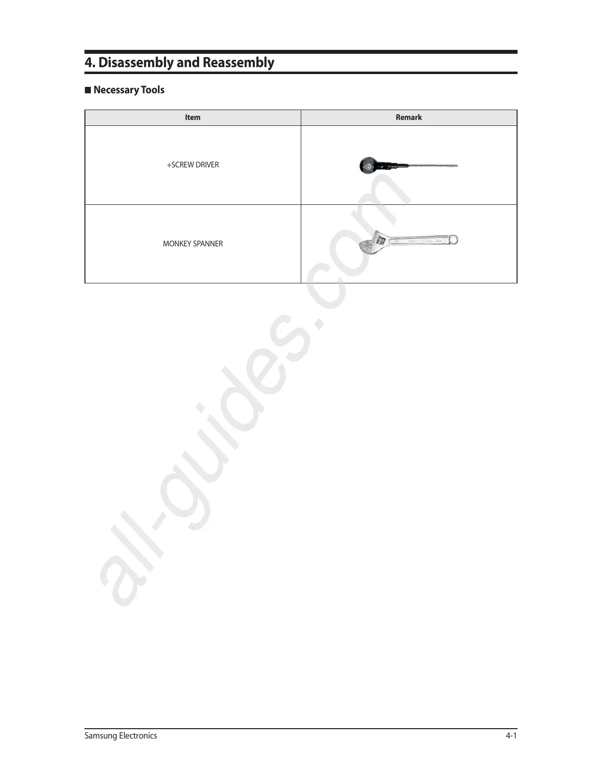 Samsung RHF025EE - Disassembly and Reassembly; Necessary Tools