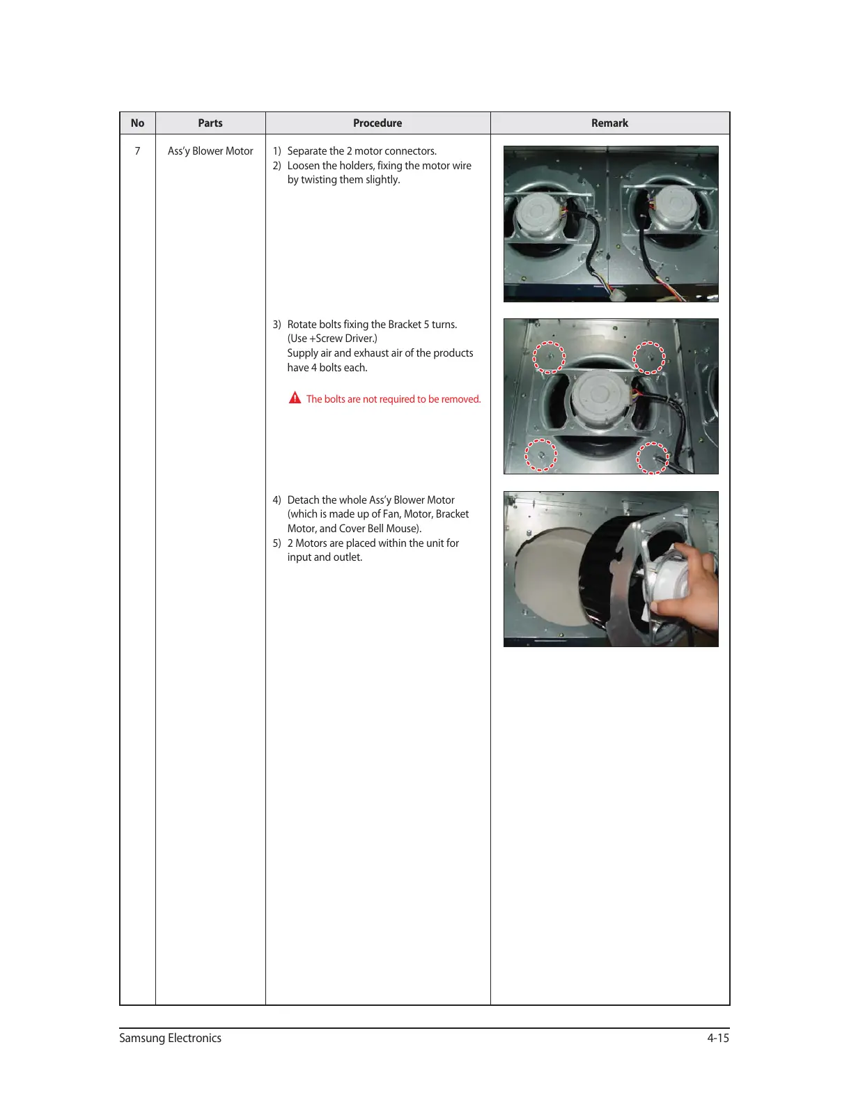 4) Detach the whole Ass’y Blower Motor
