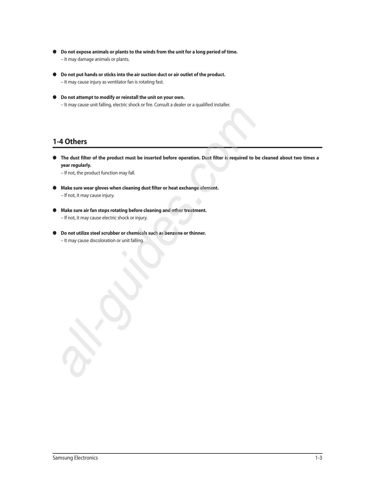 O Make sure wear gloves when cleaning dust filter or heat exchange element.
