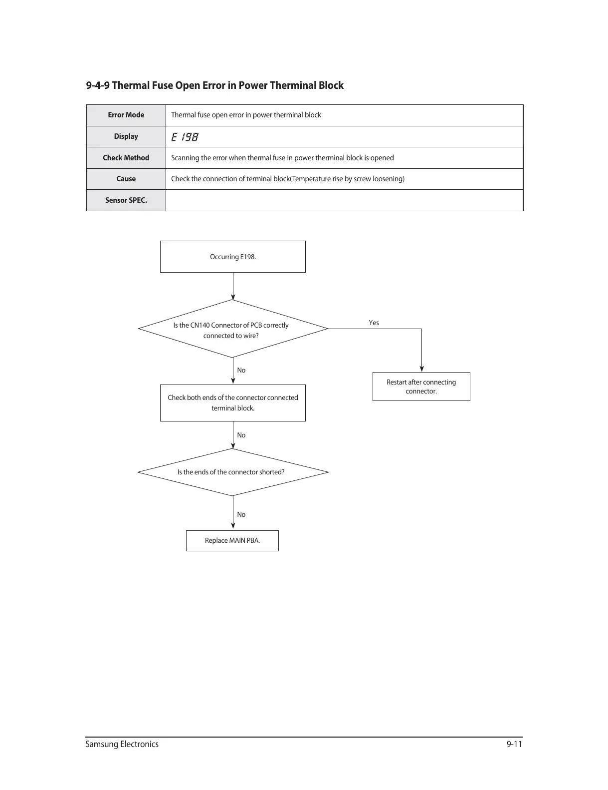 9-4-9 Thermal Fuse Open Error in Power Therminal Block