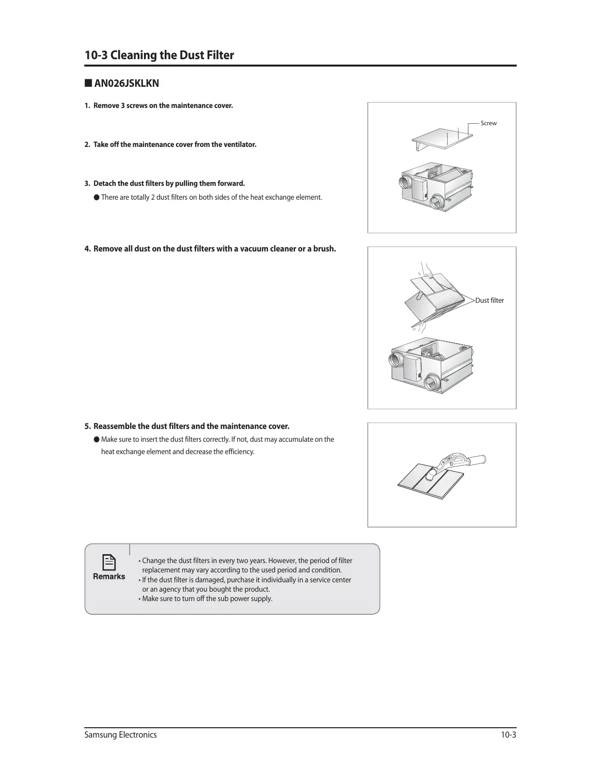 There are totally 2 dust filters on both sides of the heat exchange element.
