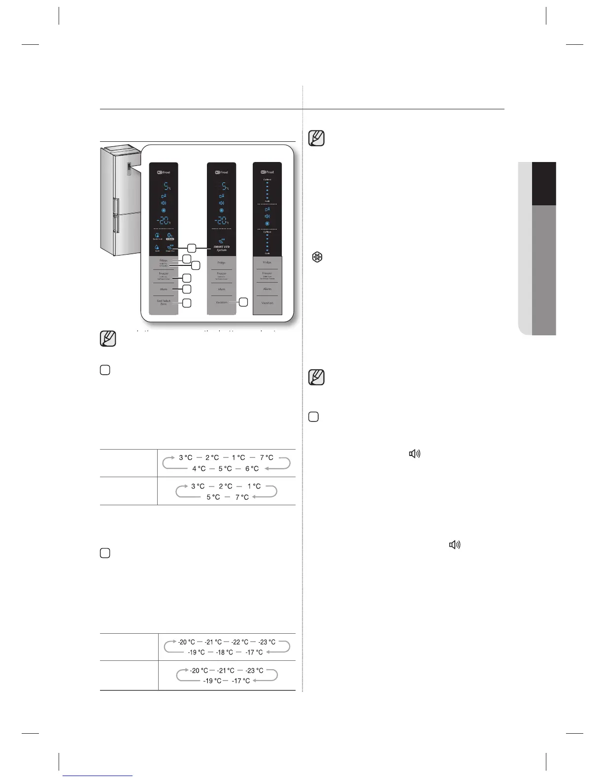 Press the Freezer button to set the freezer to desired