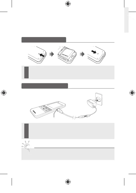 1 Slide and open the battery cover in the direction of the arrow.