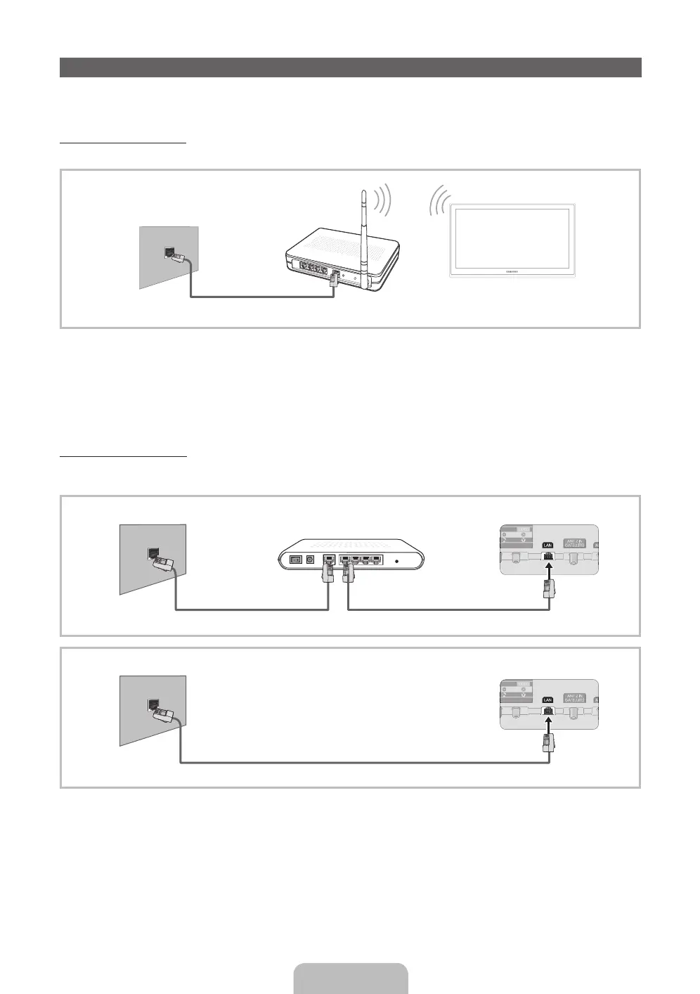 Esistono principalmente due modi per collegare il televisore alla rete via cavo, a seconda dell'impostazione di rete. Di seguito vengono descritti più in