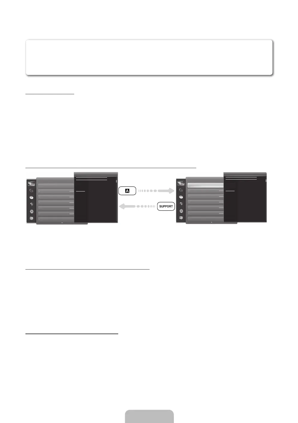 1. Wenn Sie Hilfe benötigen, wählen Sie mit Hilfe der Fernbedienung die Funktion Unterstützung. Das Fenster Unterstützung wird angezeigt.
