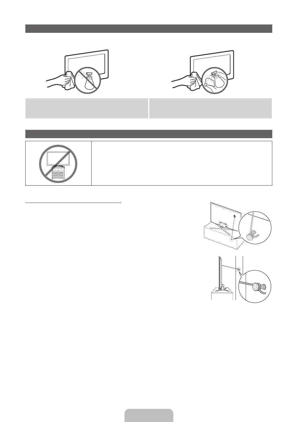 • Es ist noch sicherer, wenn die Halterungen an der Wand niedriger als die Halterungen am Fernsehgerät sind.