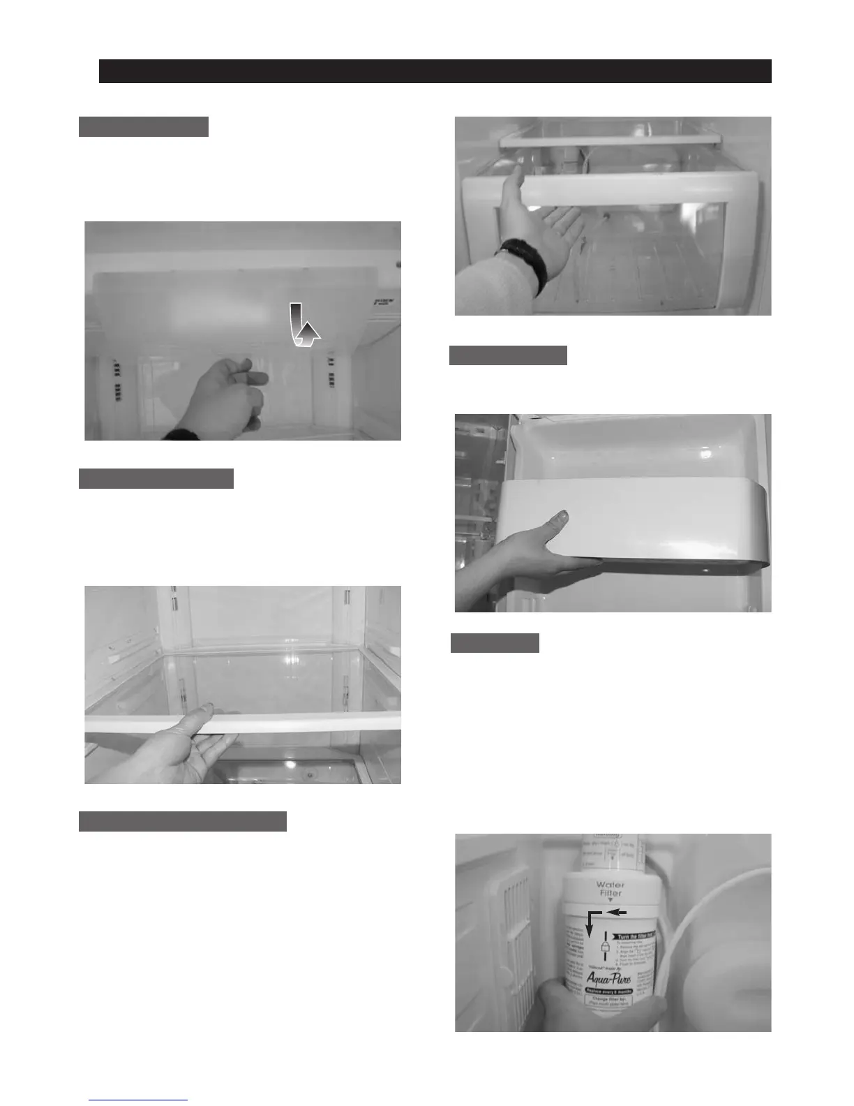 corner of the refrigerator. The water filter filters water