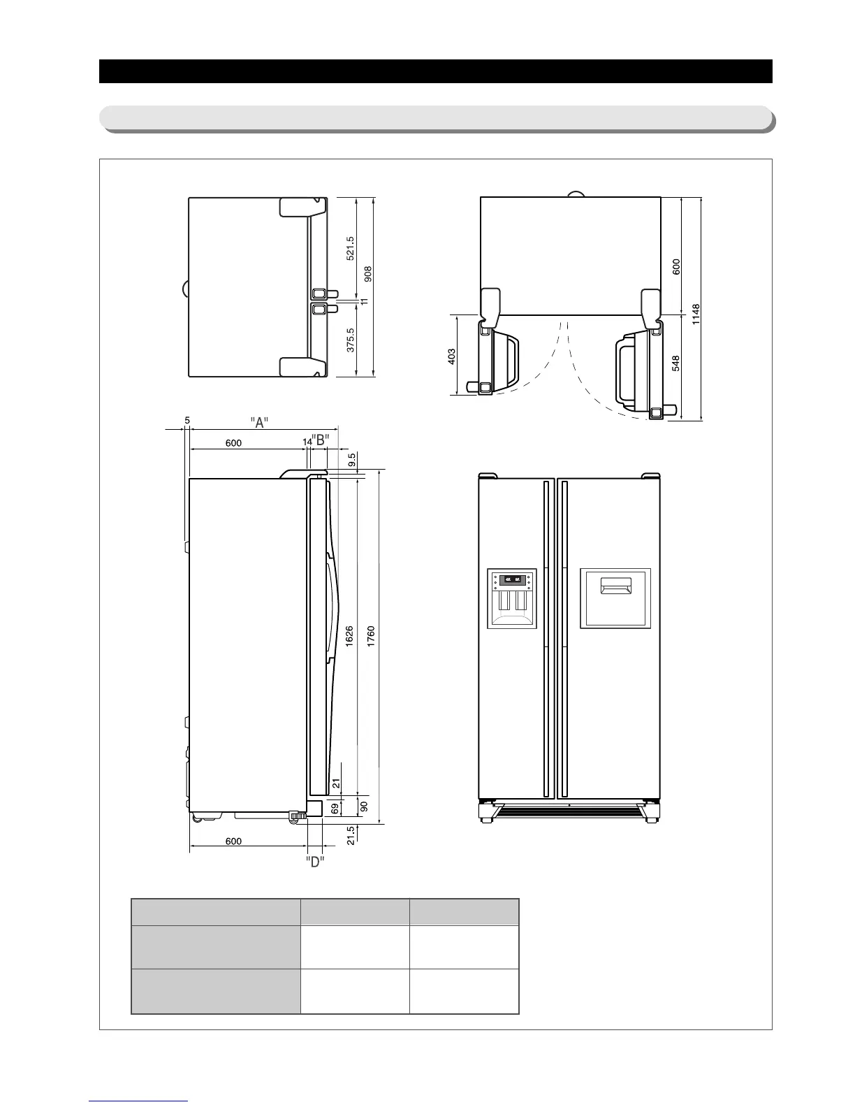 Samsung RS21 - Unit Dimensions and Specifications
