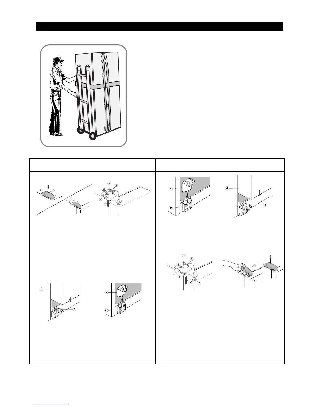 hole of the refrigerator (⑧), assemble bolts (⑨)
