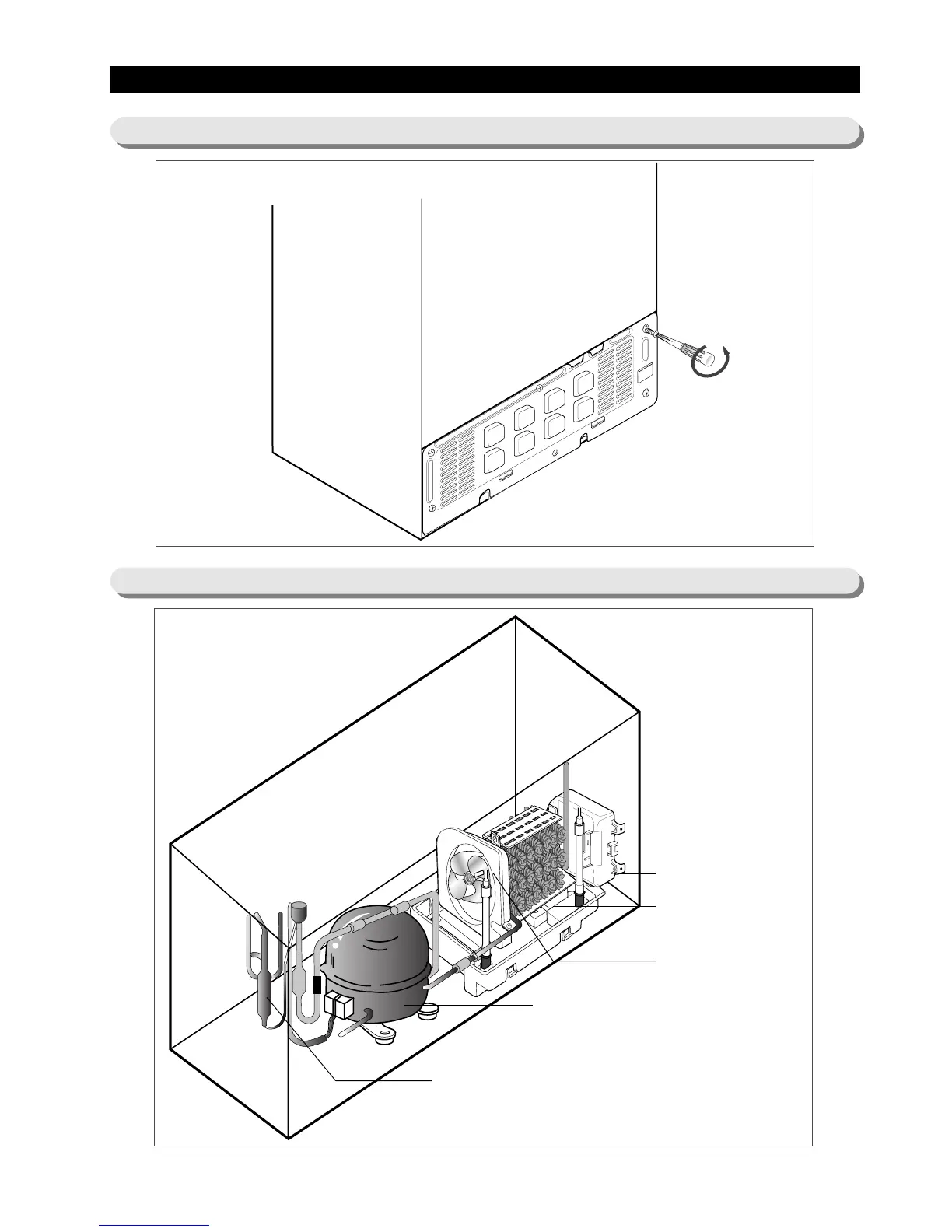 13-1) Please remove fixed screw of cover of machine room of Refrigerator rear low part.