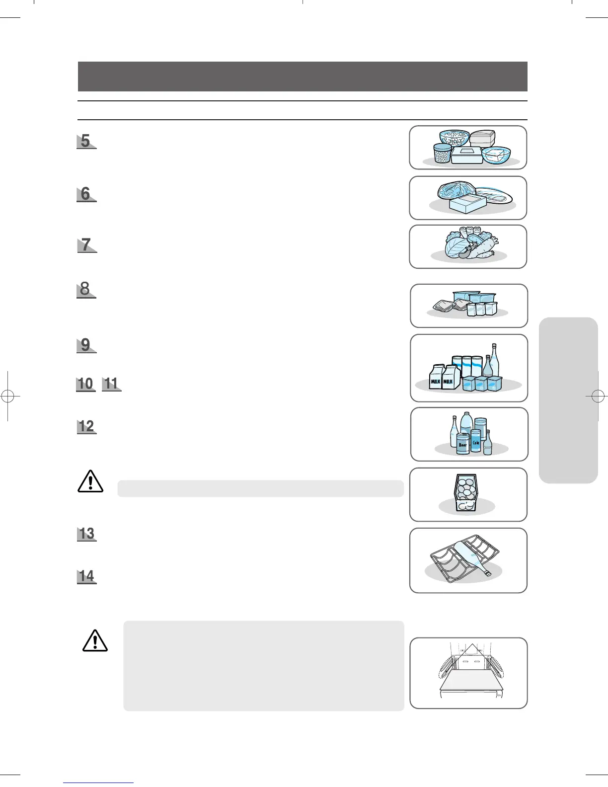 • In case the model has CoolSelect zone Do not insert a shelf to this rail, or