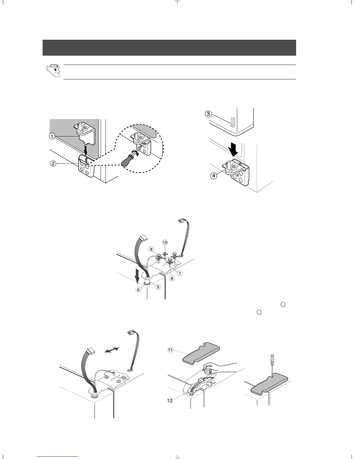 hinge screws (➈) and gound screw (➉) in the clockwise direction.
