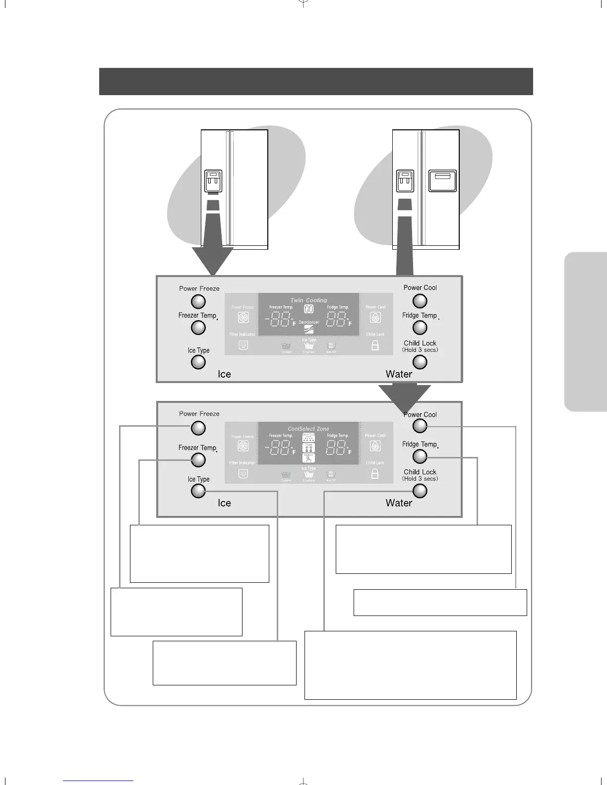 Power Cool, Freezer Temp. and Fridge Temp. are locked and