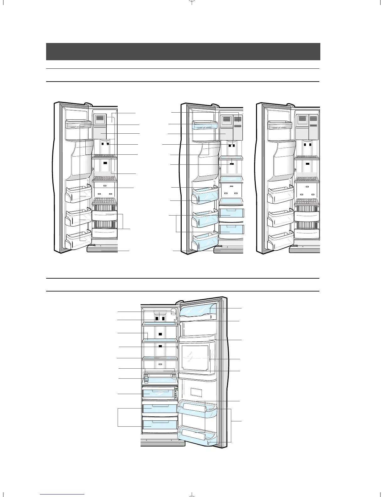 Samsung RS2534BB - Shelves and Bins Configuration; Freezer and Refrigerator Compartment Layout