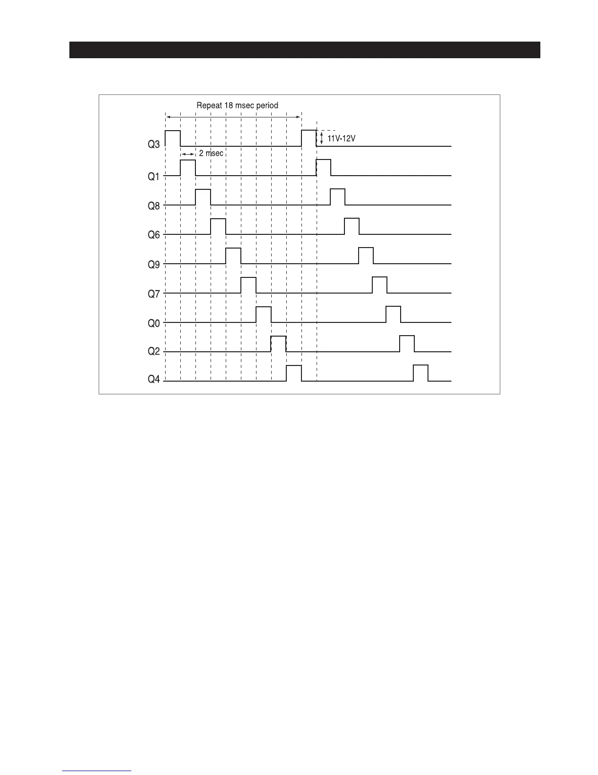 The 6 step signals, Q6∼Q4 are applied to scan the 6 keys (buttons). When SW6 is pressed, the step signal from Q6