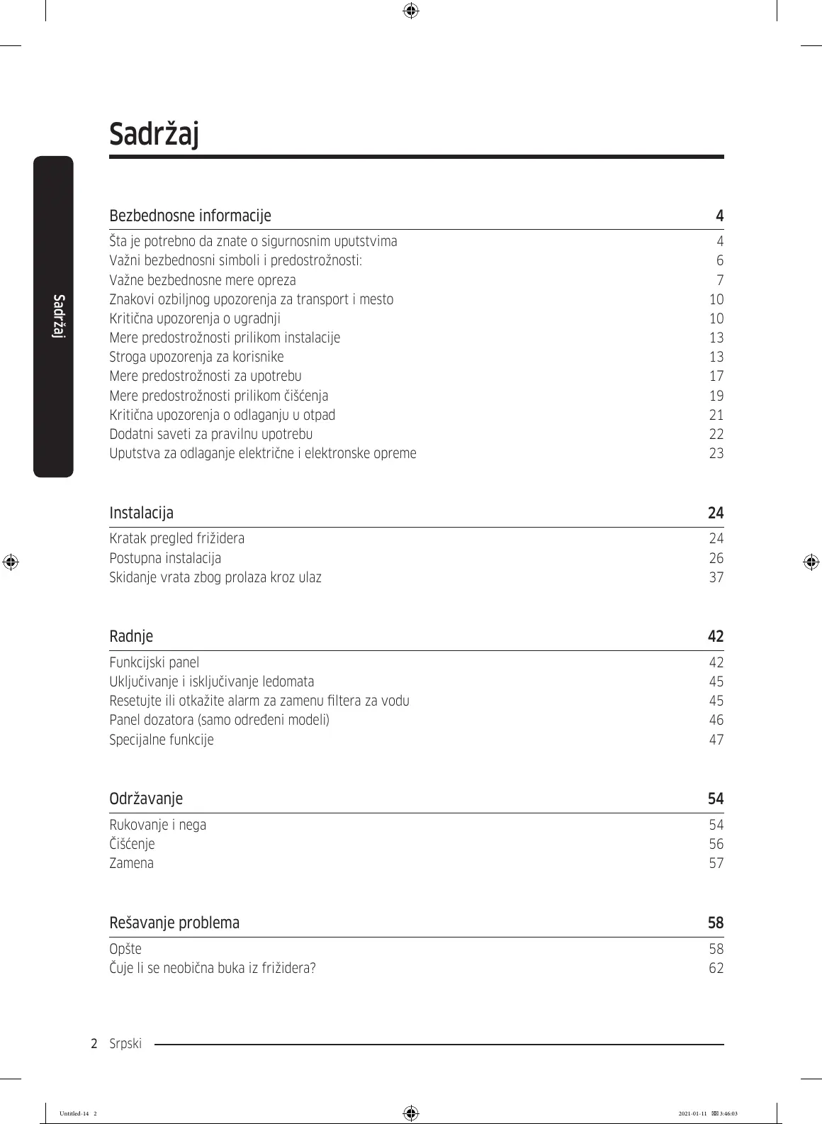 Resetujte ili otkažite alarm za zamenu ltera za vodu 45