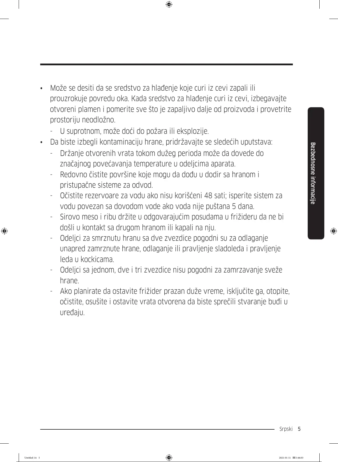 • Da biste izbegli kontaminaciju hrane, pridržavajte se sledećih uputstava: