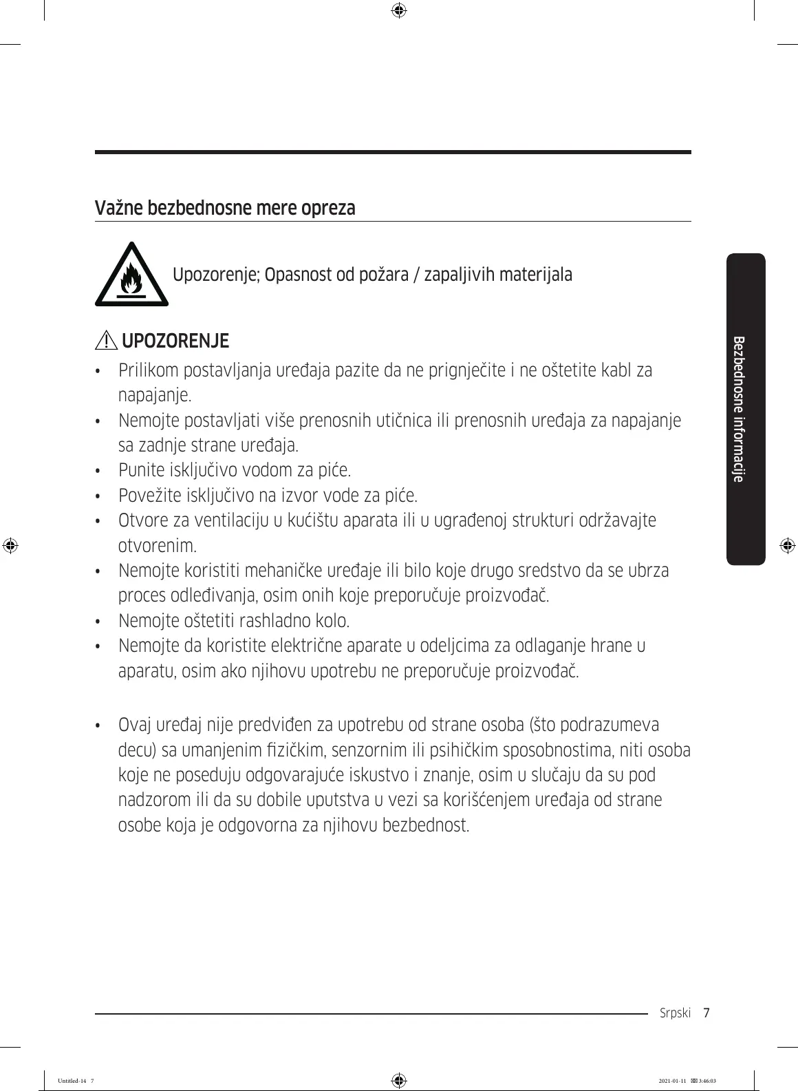 • Ovaj uređaj nije predviđen za upotrebu od strane osoba (što podrazumeva