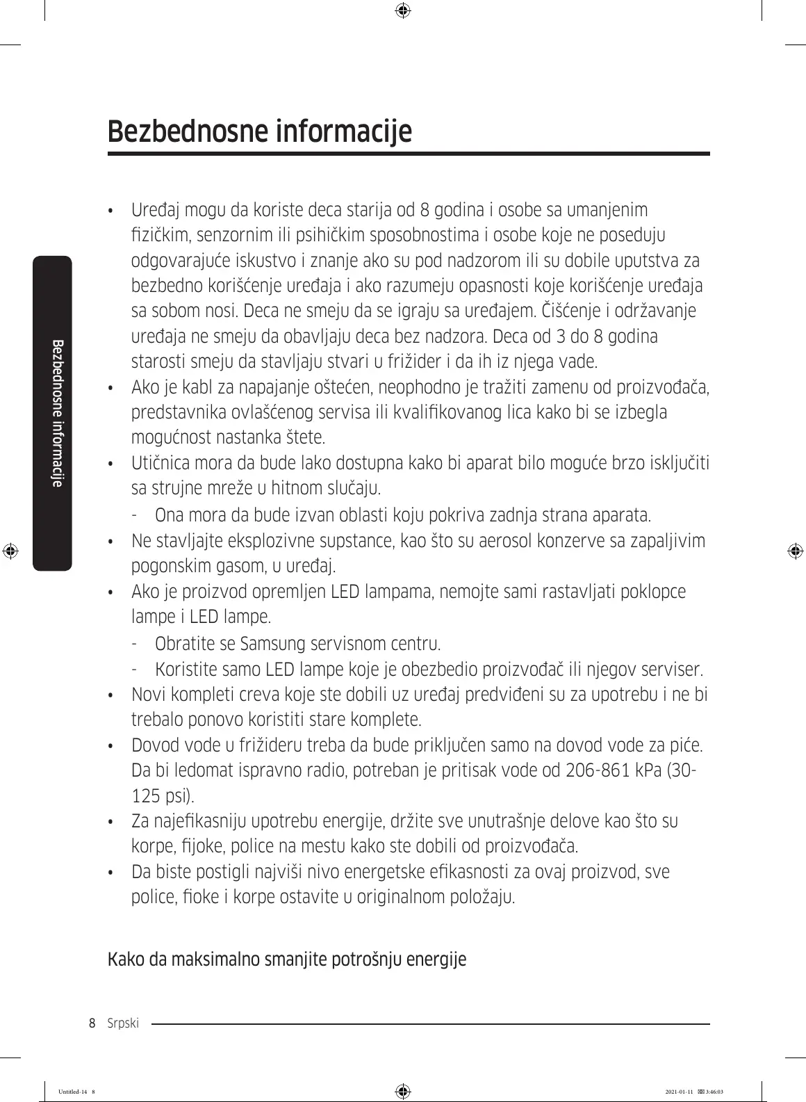• Da biste postigli najviši nivo energetske ekasnosti za ovaj proizvod, sve