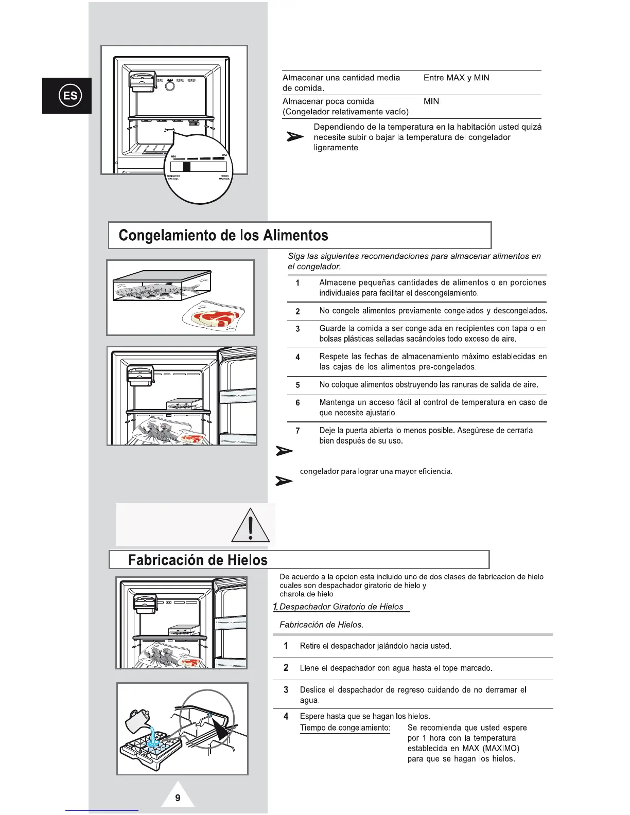 temperatura del congelador y la perilla del refrigerador en "MAX"