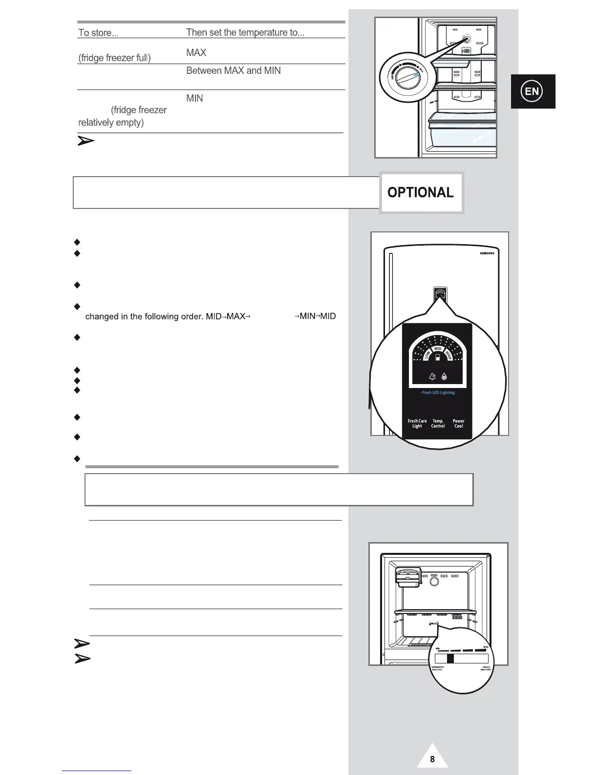 to “MIN (REFRIGERATOR MAX COOL”) to direct more cold