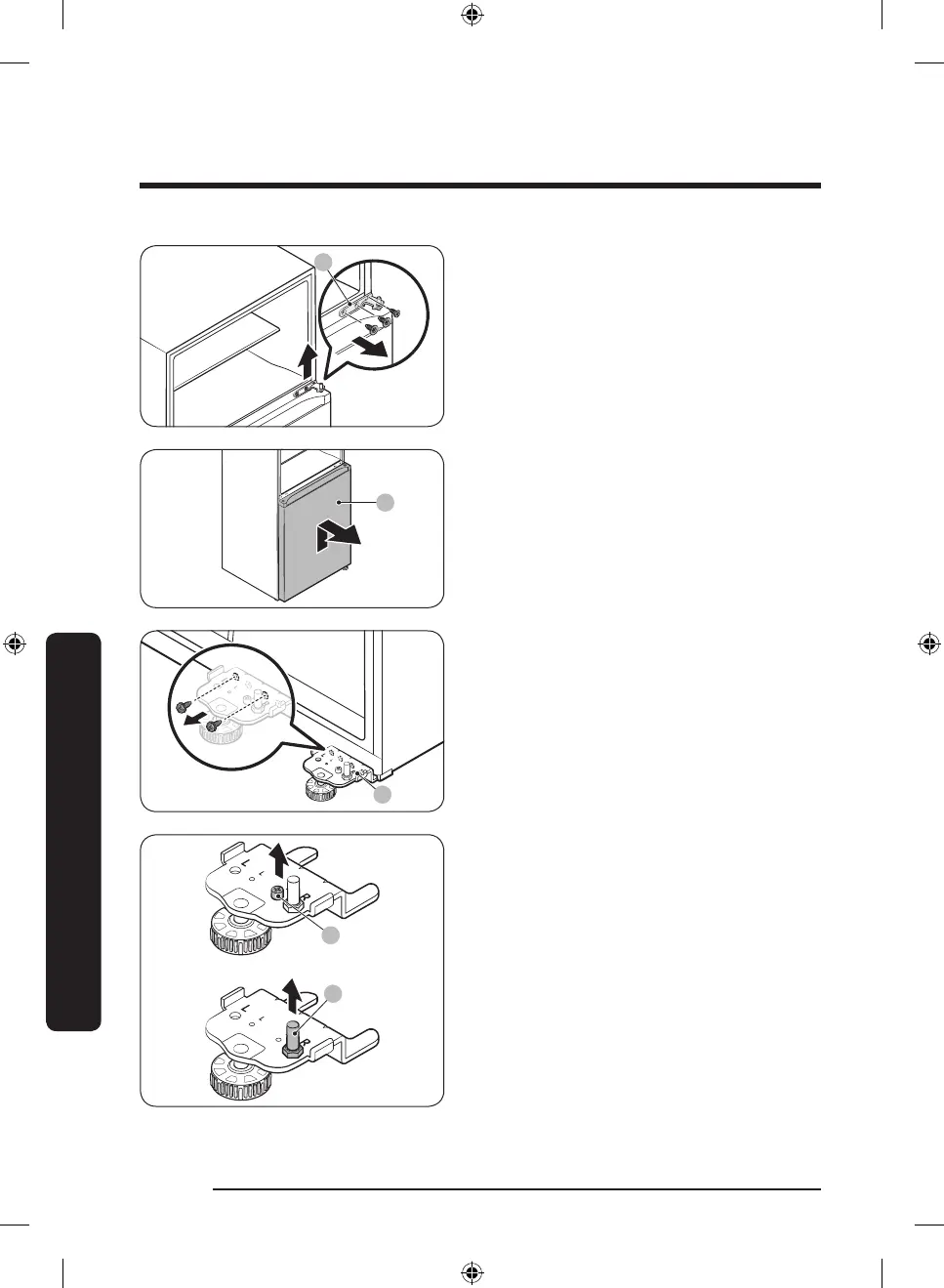 6. Gently lift the fridge door (A) to remove