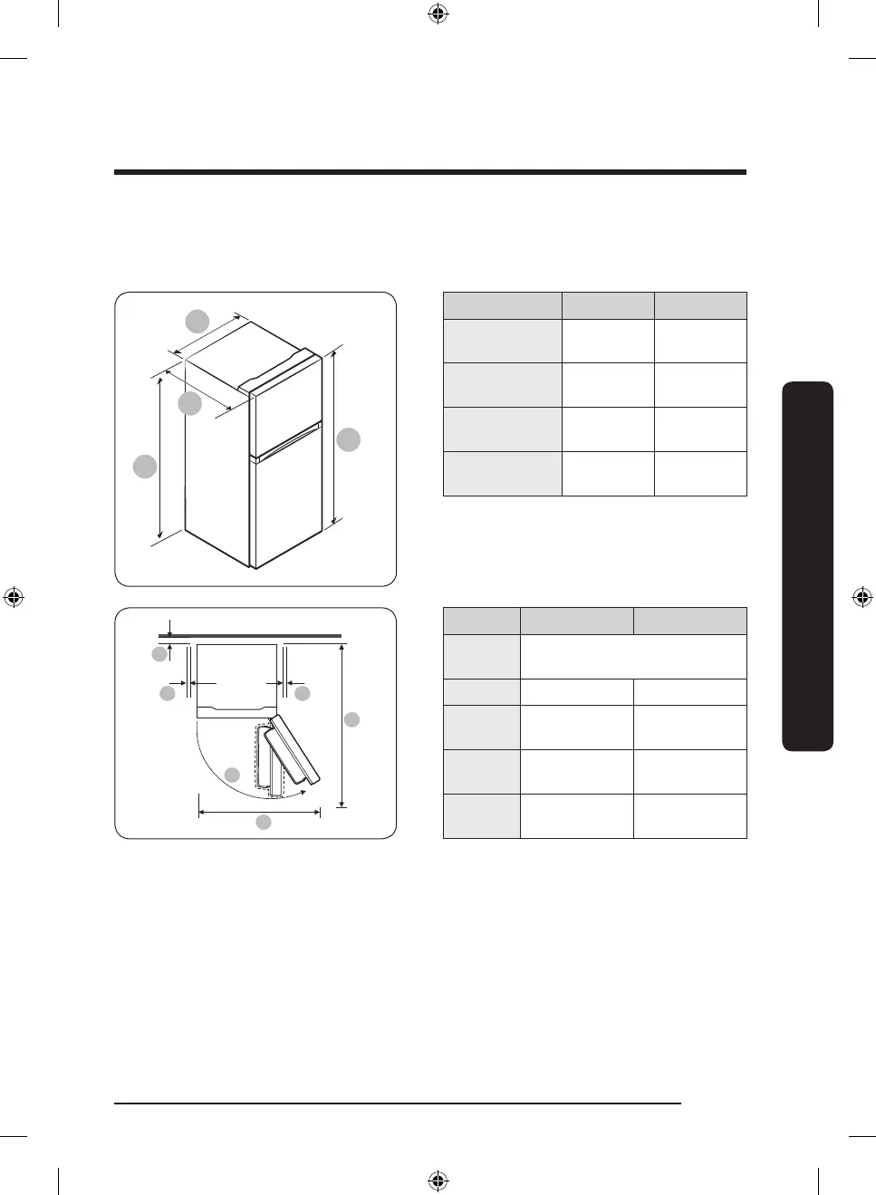 Pour connaître les exigences en matière d'espace d'installation, reportez-vous aux images et au tableau