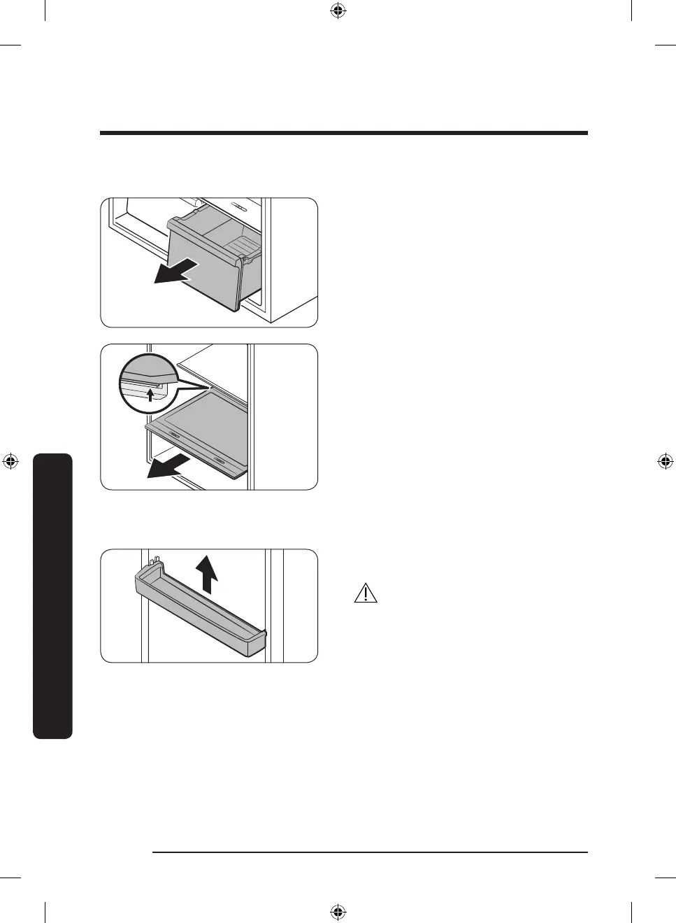 Lift up the door shelf slightly, and then pull