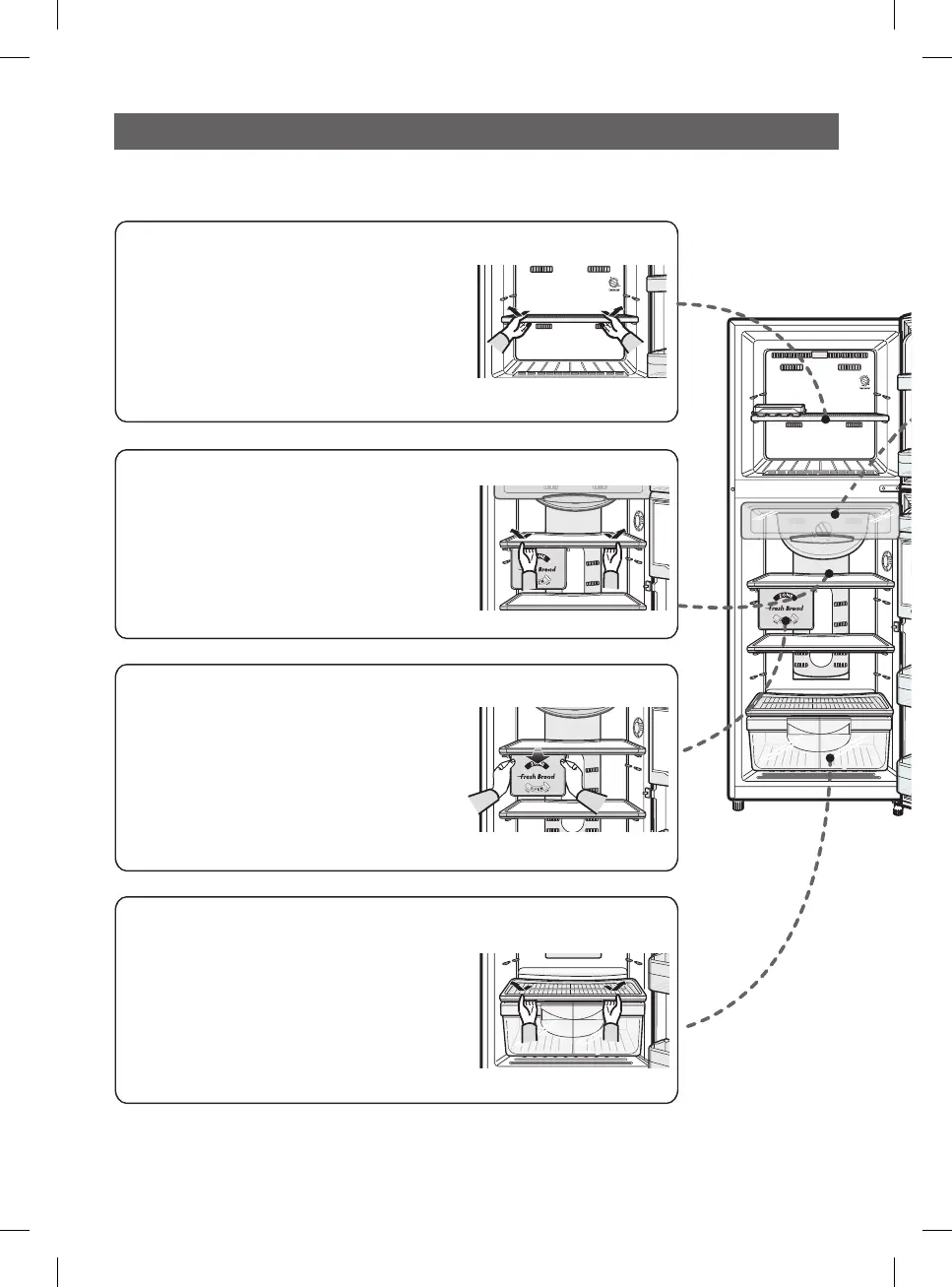 - Pull the shelves towards you until it