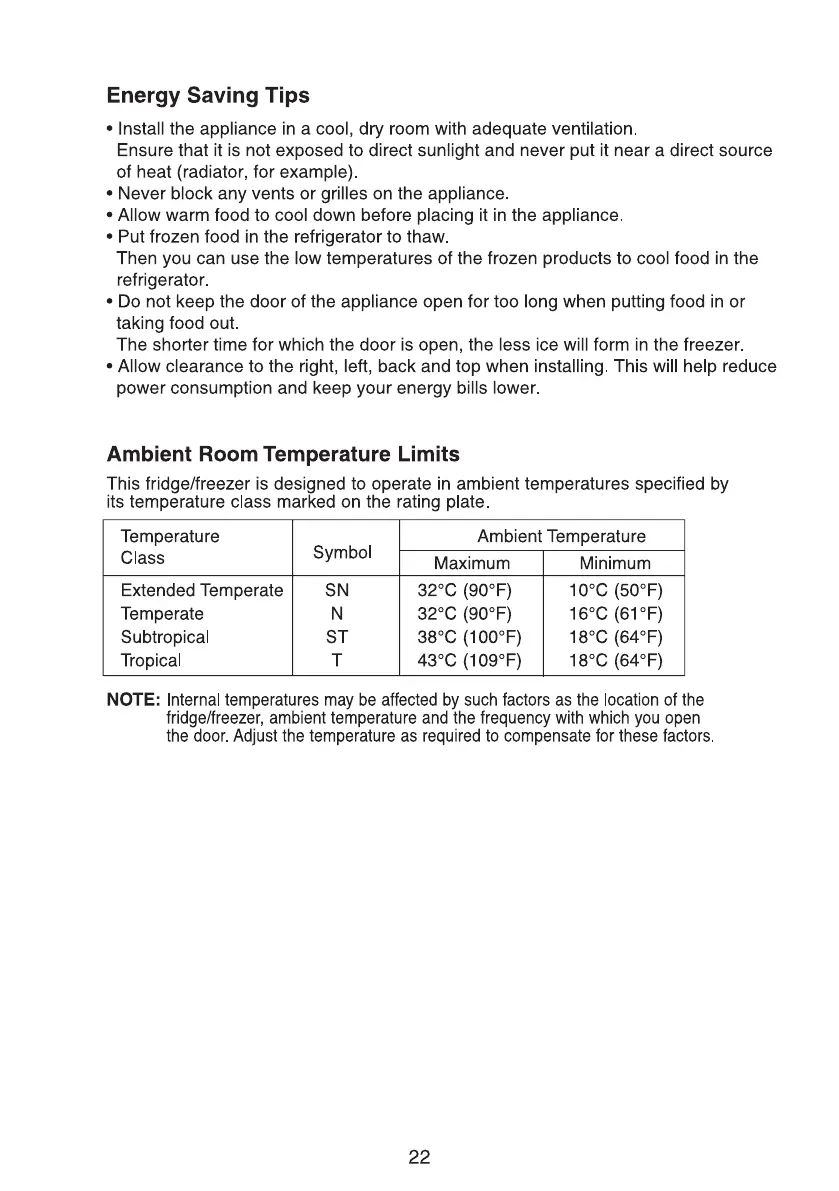 Samsung RT30G - Energy Saving Tips; Installation Environment; Vent and Grille Obstruction; Cooling Warm Food
