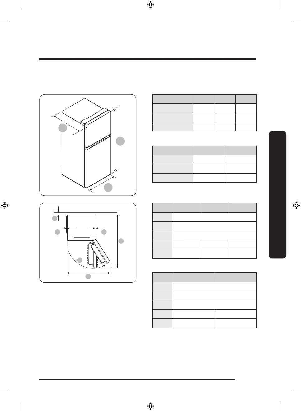 Consulte las imágenes y la tabla siguientes para conocer el espacio necesario para la instalación.