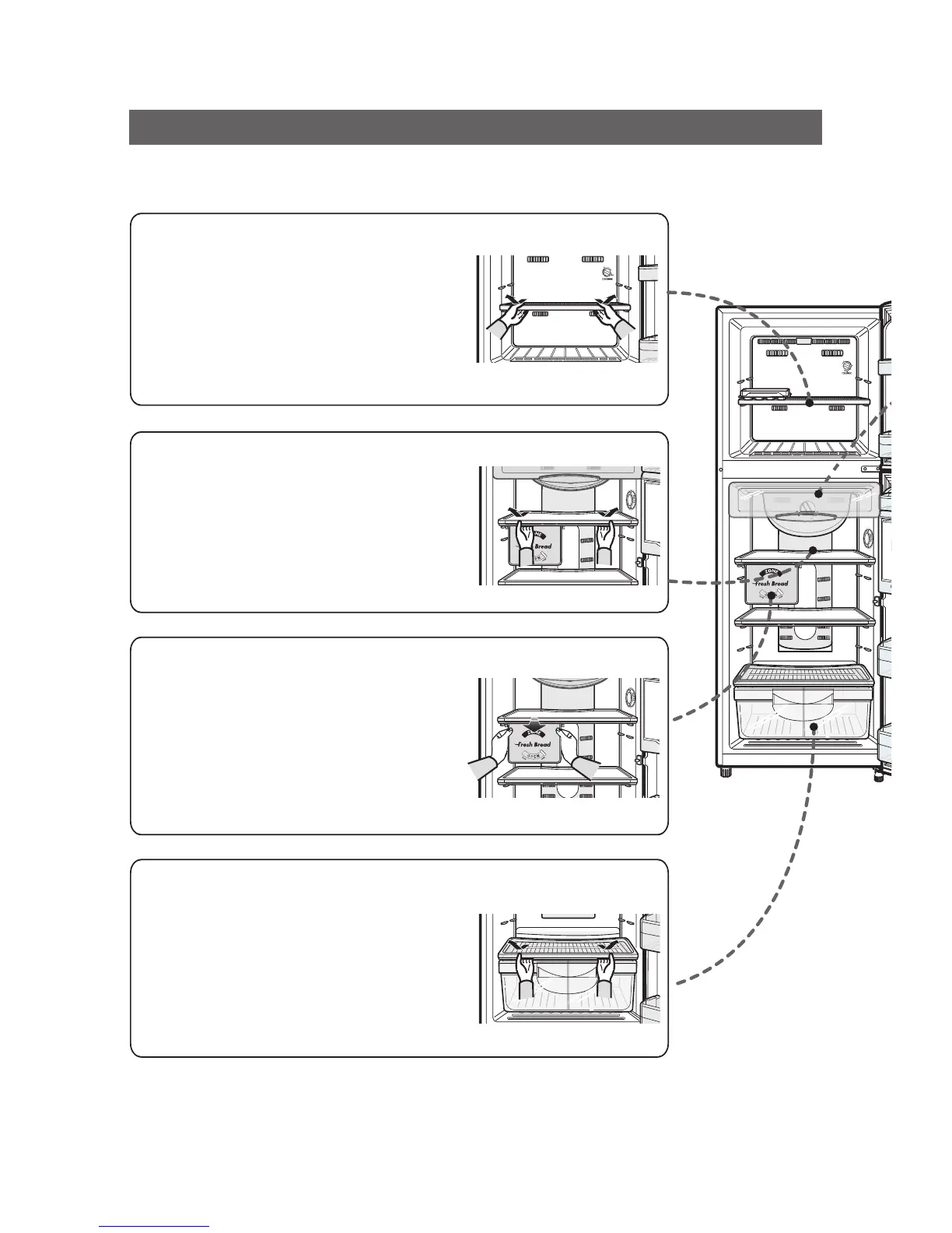- Pull the shelves towards you until it