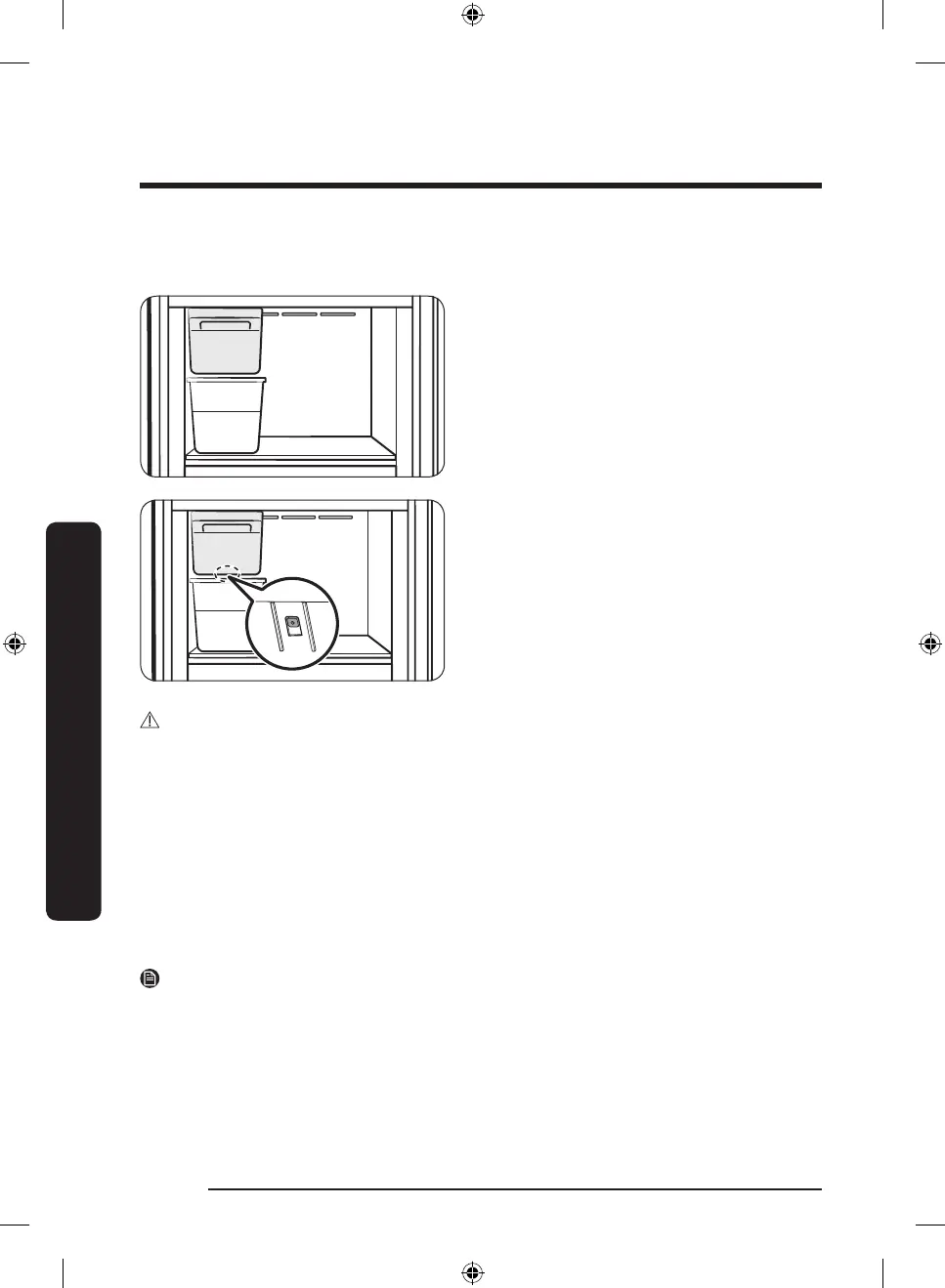 • Non inserire mai le dita o altri oggetti nell’ice maker. Ciò può causare lesioni personali o danni