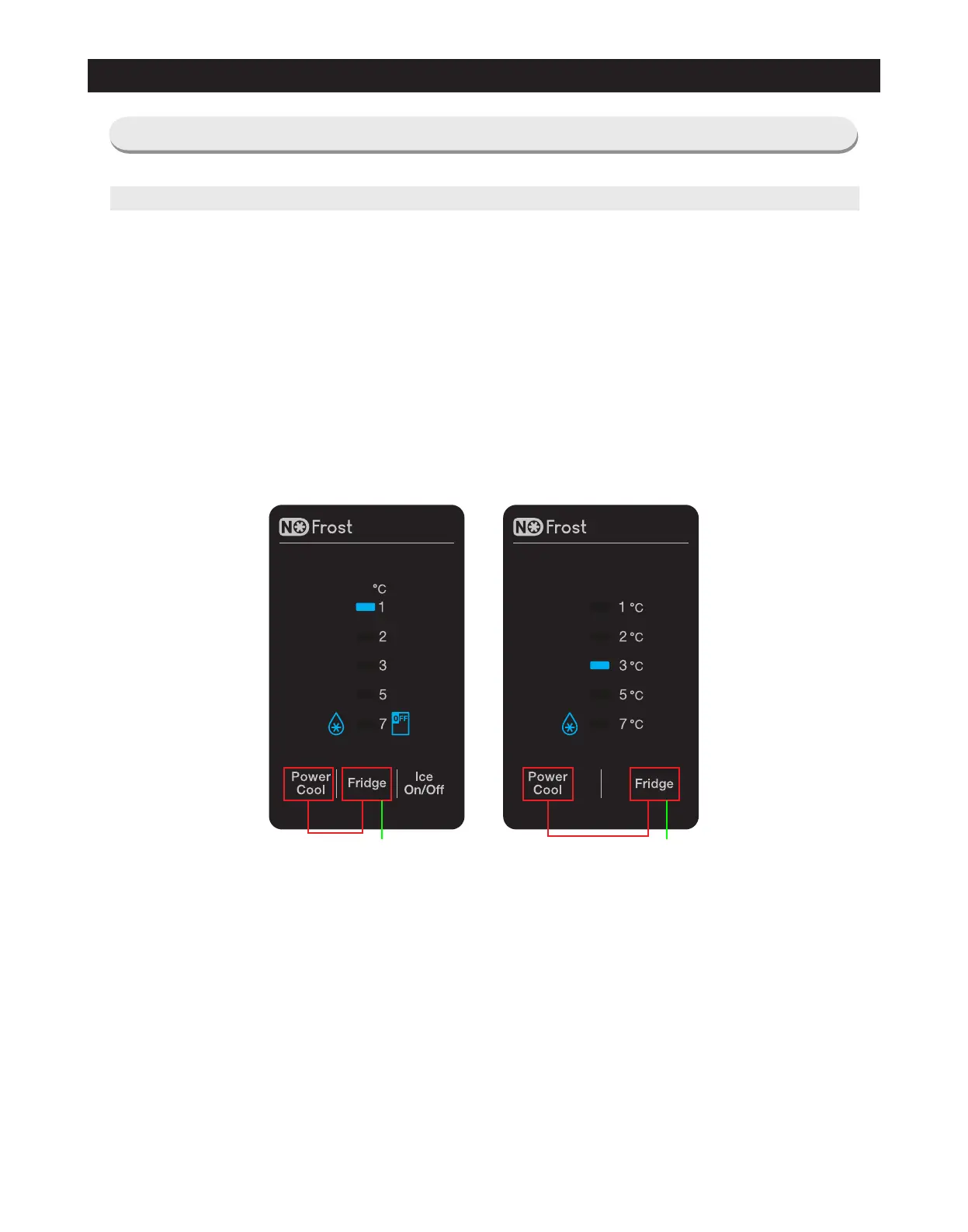 At this time, release the "Fridge" and the "Power Cool" buttons, and press the "Fridge" button. Then, it will