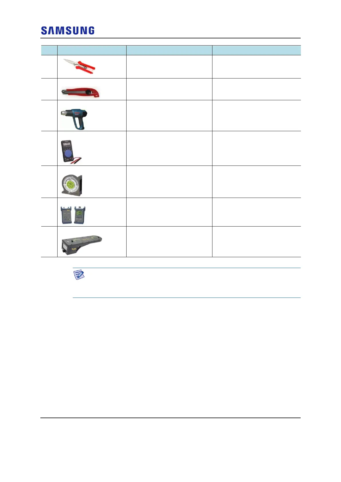 The required installation tools may vary depending on the site conditions.