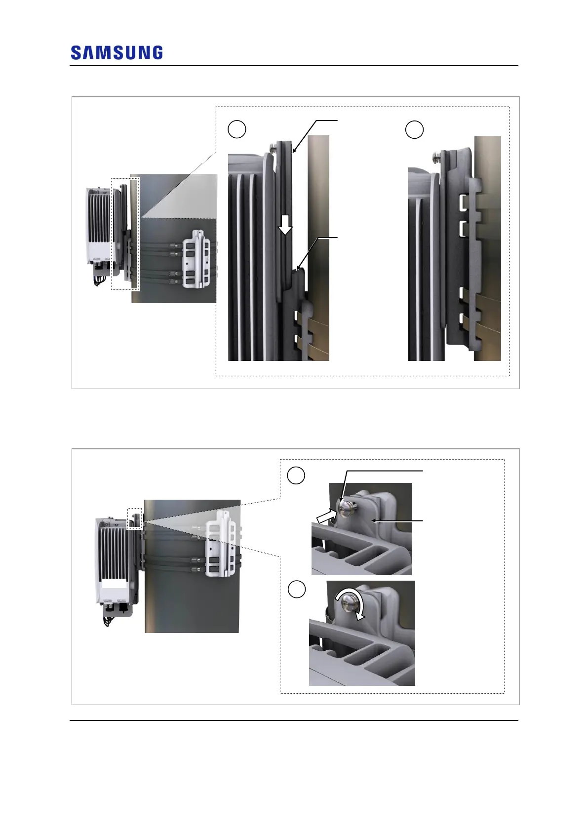 3 Fix the unit bracket of the RRH-0 to the mounting bracket using the fastener.