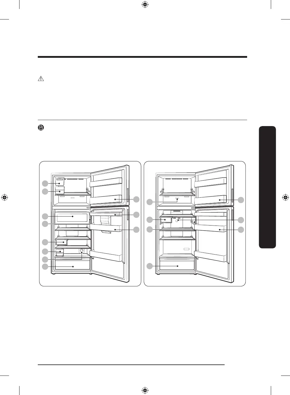 The actual image and provided component parts of the refrigerator may differ, depending