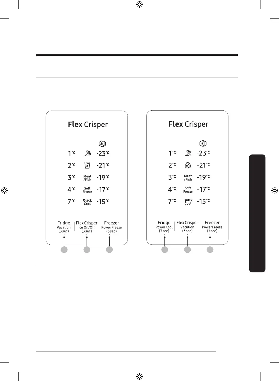 02 Flex Crisper / Ice On/Off (3 sec) /