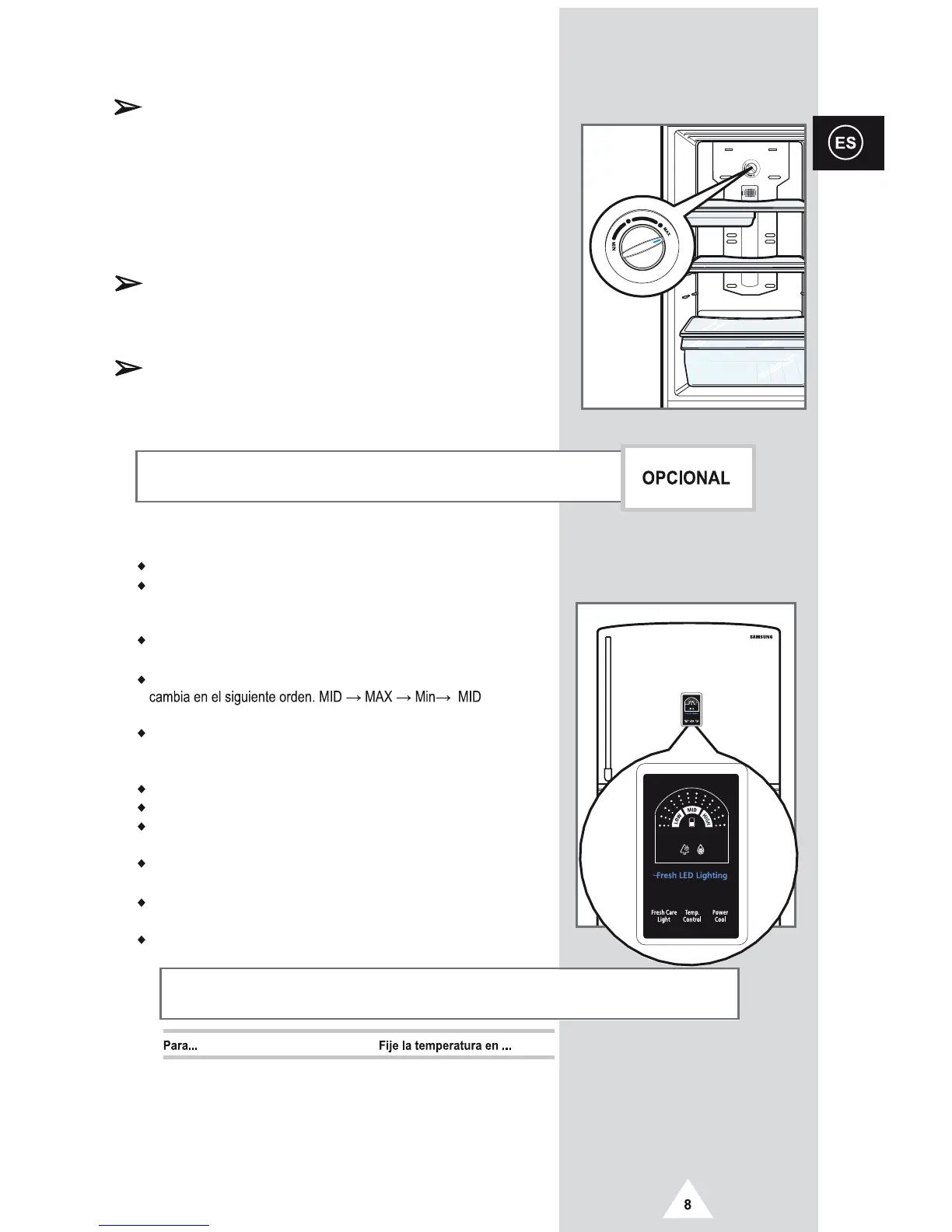 Usted puede seleccionar la temperatura (más caliente, MIN, MID, MAX)