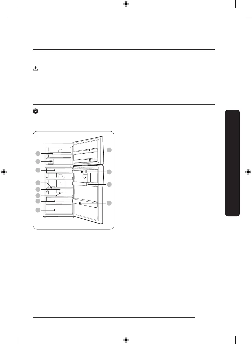 The actual image and provided component parts of the refrigerator may differ, depending