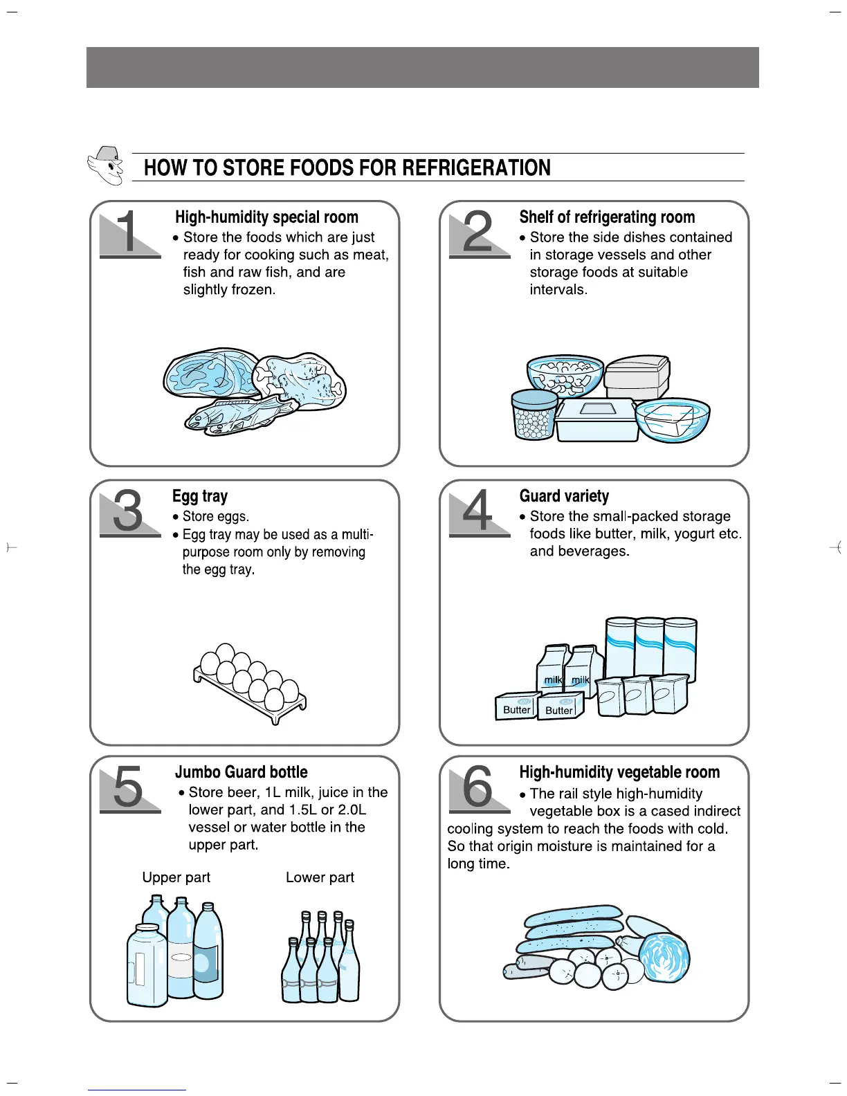 Samsung RT52EAEW - How to Store Foods for Refrigeration; High-Humidity Special Room Storage; Refrigerating Room Shelf Storage; Egg Tray Usage
