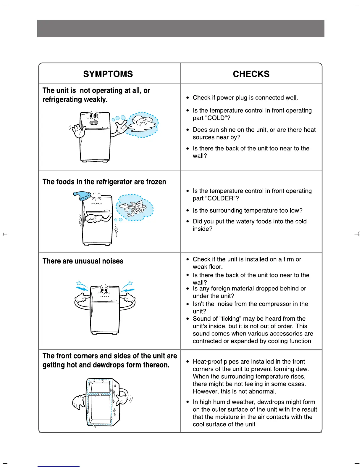 Samsung RT52EAEW - Checks Prior to Service Request; Unit Not Operating or Weak Refrigeration; Food Freezing in Refrigerator; Unusual Noises
