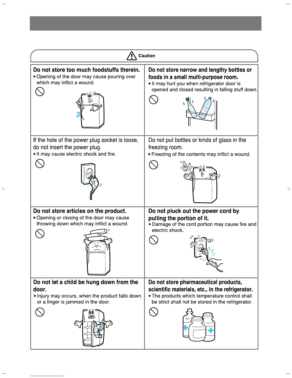 Samsung RT52EAEW - Caution For Safety; Foodstuff Overfilling; Narrow Bottle Storage; Loose Socket Warning