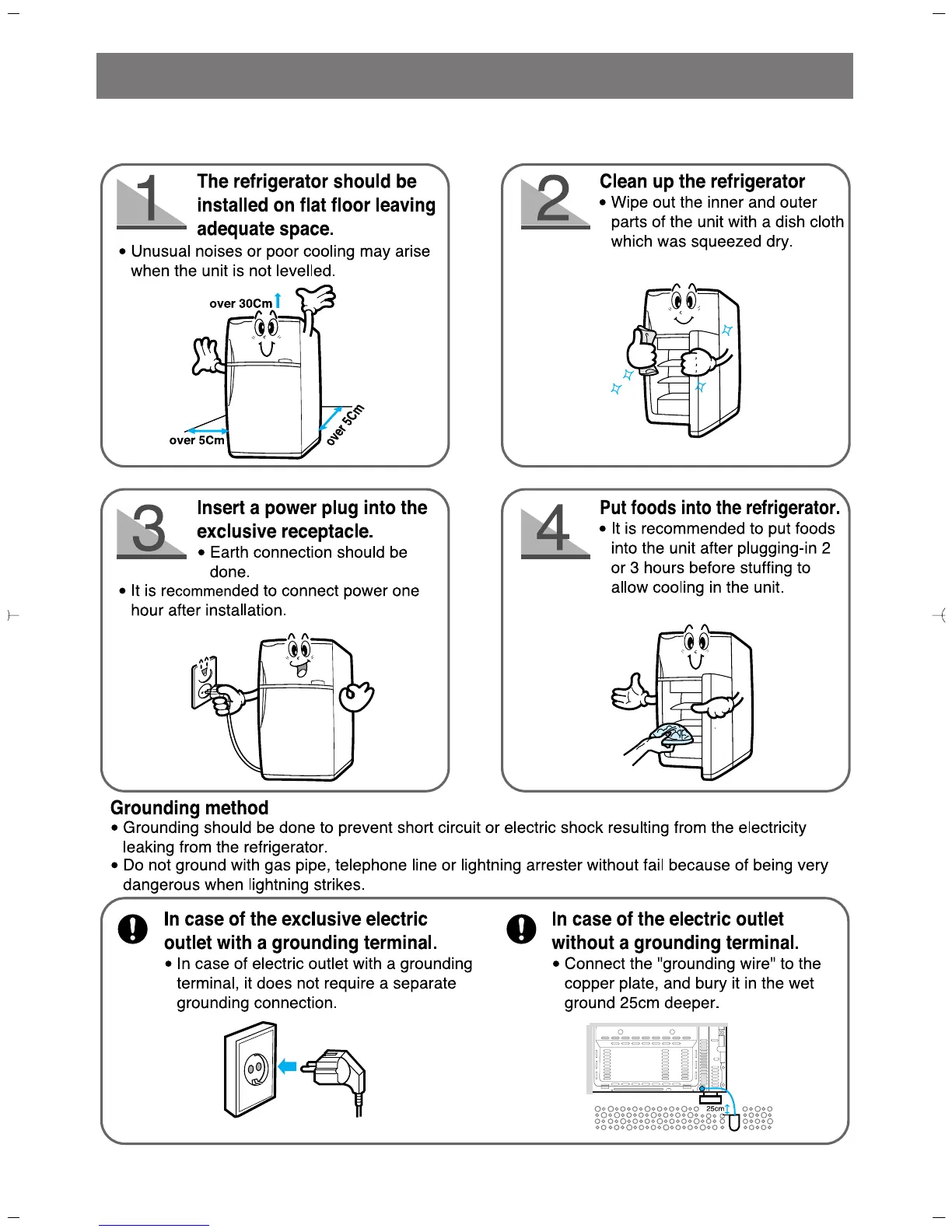 Samsung RT52EAEW - Preparations Prior to Use; Proper Installation and Space; Initial Cleaning; Power Plug Connection