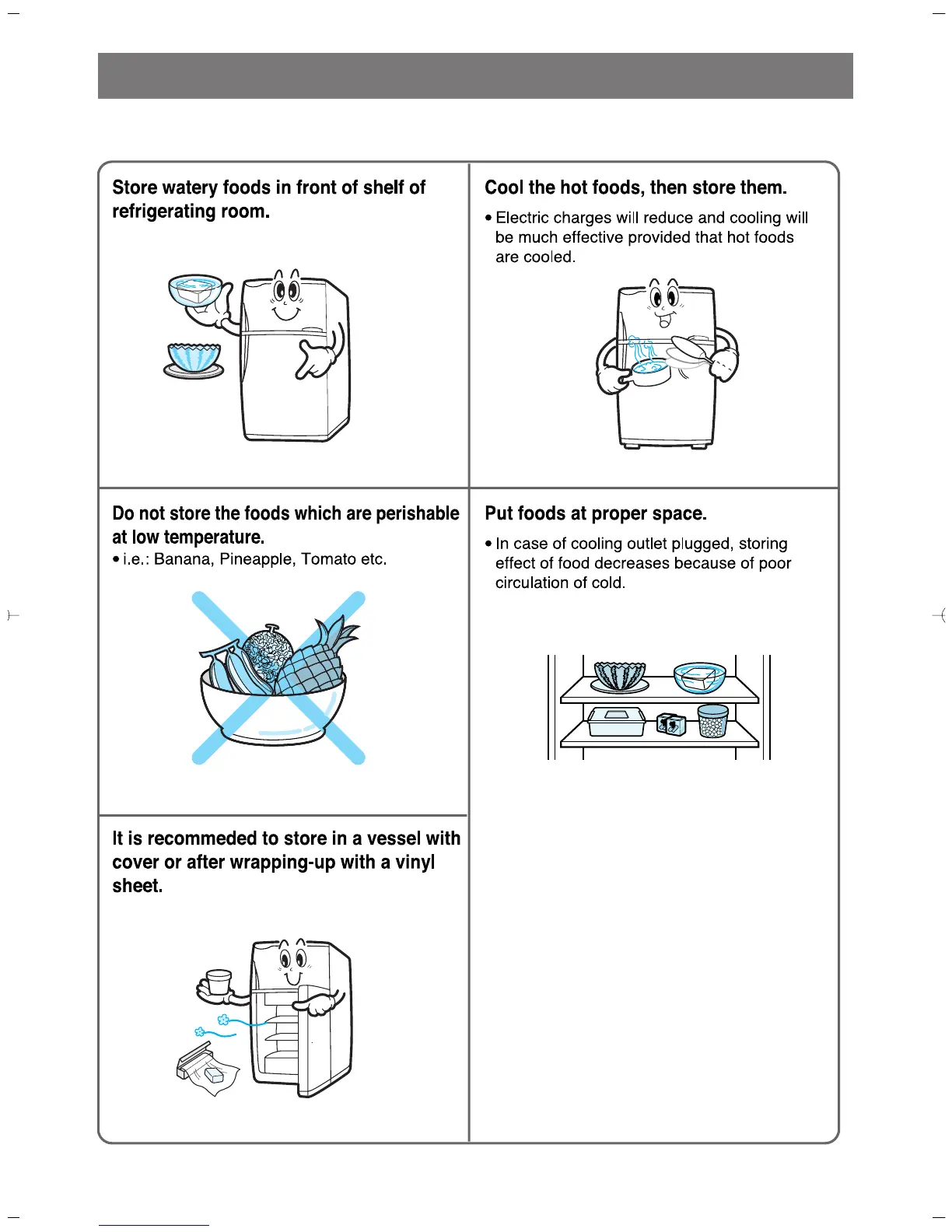 Samsung RT52EAEW - How to Store Foods Correctly; Watery Food Placement; Cooling Hot Foods; Low-Temperature Perishables
