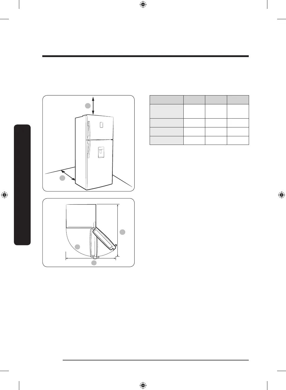 Consulte las ilustraciones y la tabla que aparece a continuación para conocer los requisitos de espacio para