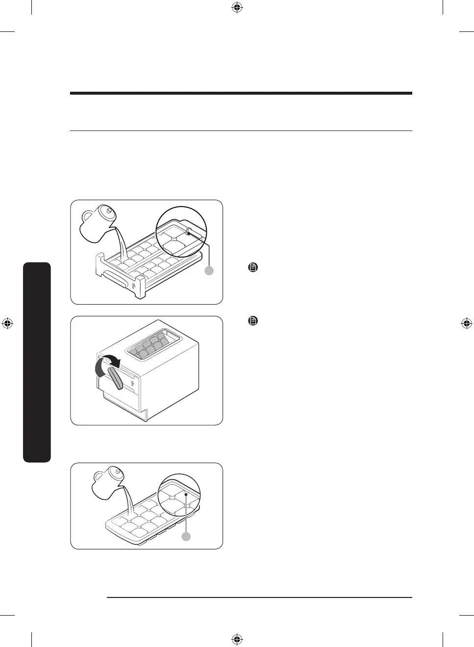 To make ice cubes, ll the tray with water