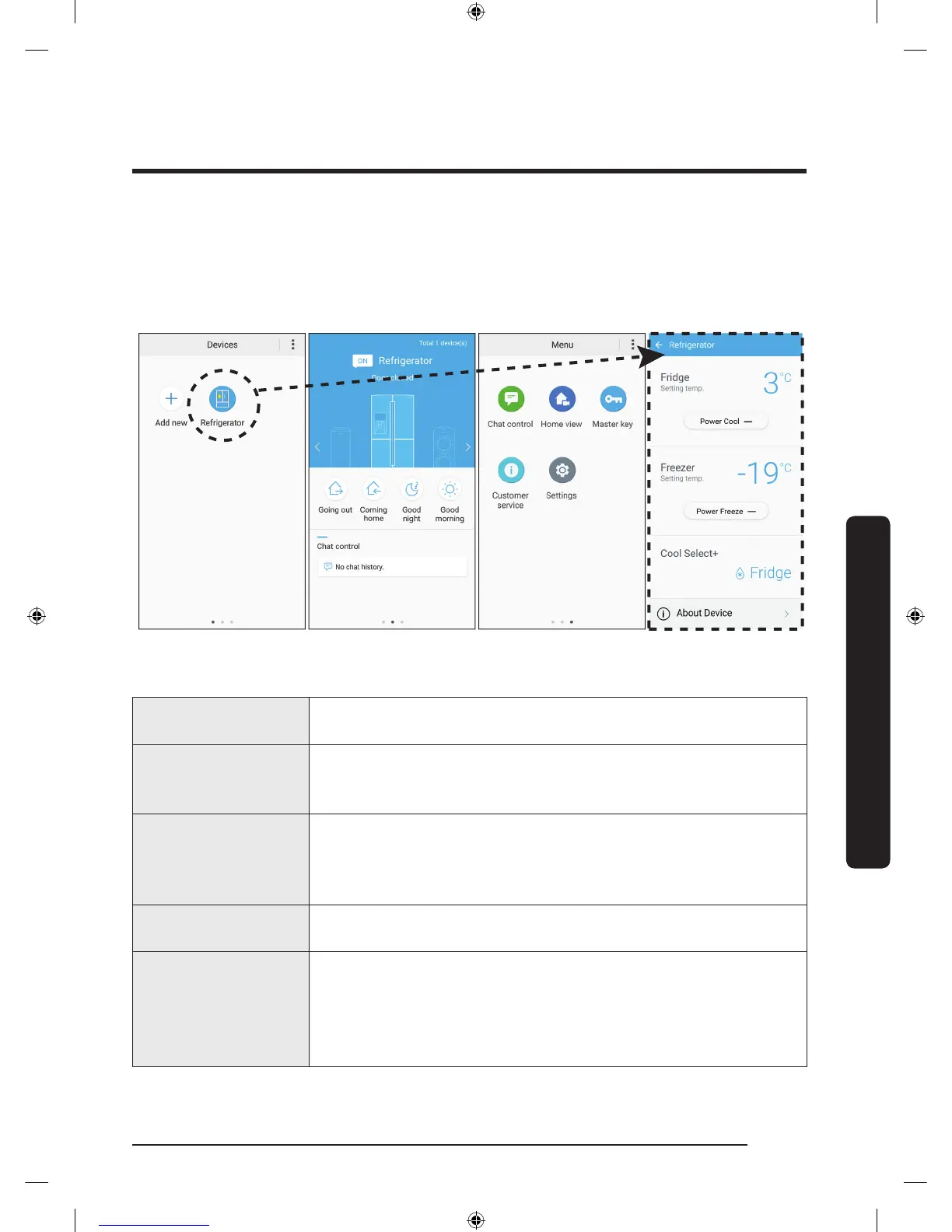 • Appuyez doucement sur Refrigerator (Réfrigérateur) pour ouvrir la page des réglages du réfrigérateur.