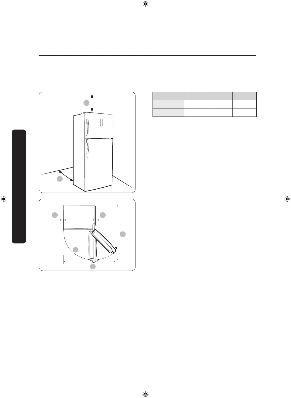 Consulte as imagens e a tabela abaixo para saber os requisitos de espaço para a instalação.